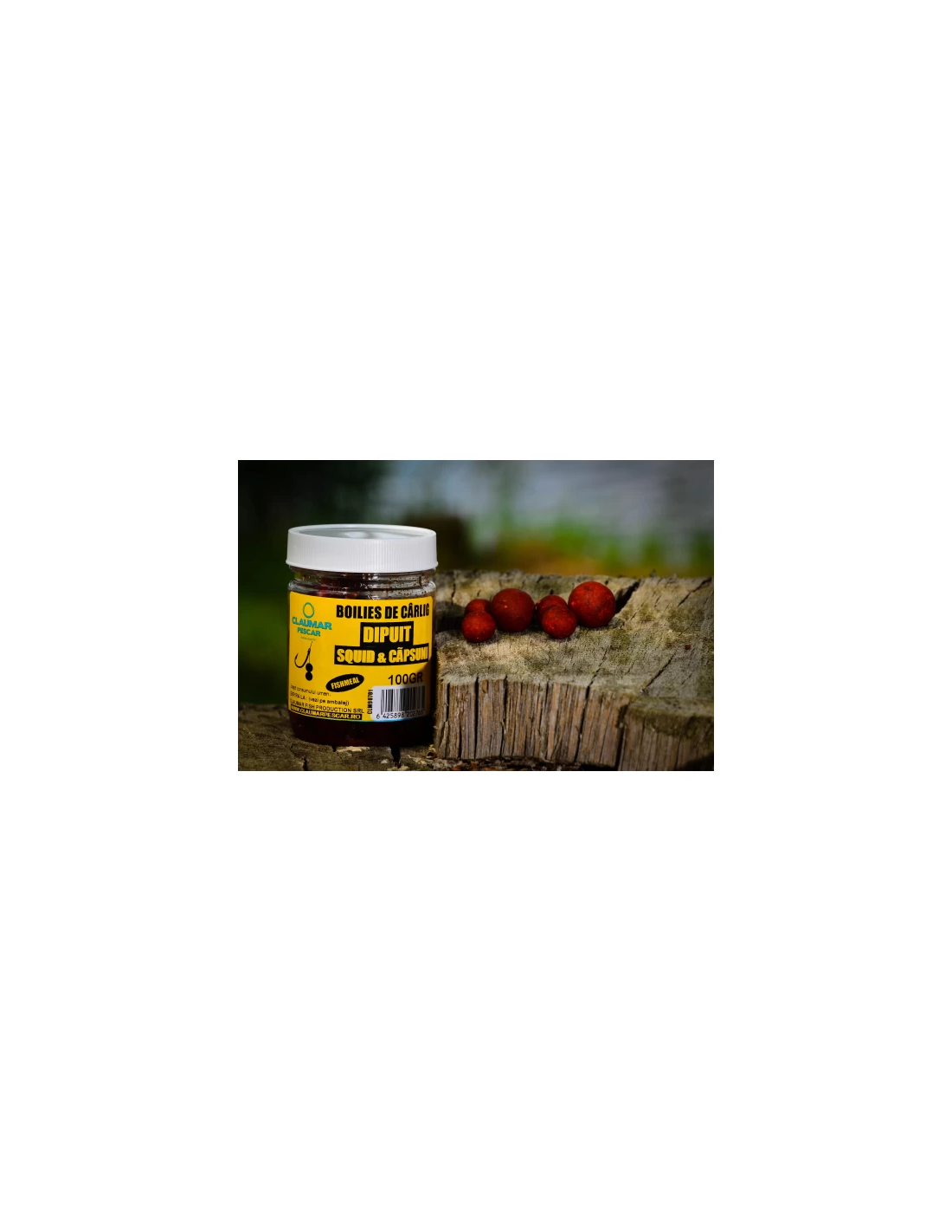 Boilies Claumar Fishmeal Tare Dipuit, Squid Capsuni, 20mm, 100gr
