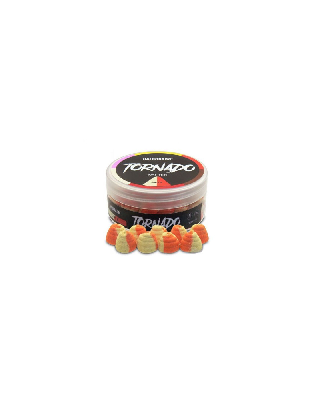 Tornado Wafter sunt, asa cum indica si numele, waftere, sau cum sunt recunoscute in pescuitul stationar, boilies-uri critic echilibrate. Acestea se caracterizeaza printr-o capacitate mare de atractie, si flotabilitate ridicata. Numele purtat de intreaga gama se afla in stransa legatura cu forma amorfa in care sunt disponibile. Se pot utiliza atat pe spin, cat si pe banda elastica, conform preferintelor si nevoilor pescarului. Mix-ul utilizat la realizarea acestor momeli are in compozitie cele mai bune ingrediente, ce vor obtine cu siguranta rezultate exceptionale in partidele de pescuit.