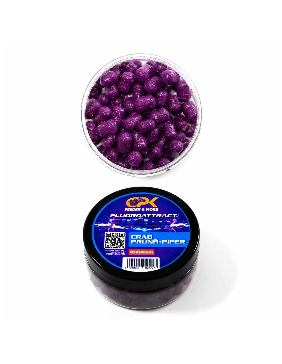 Momelile de carlig CPK Fluoroattract imbina cele mai importante elemente de atractie raportate de catre consultantii nostri. In primul rand, mixul aerat permite dispersia rapida a aromelor si atractantilor. Mai mult chiar, dipul din pot ofera un impact olfactiv imediat, mentinand in acelasi timp si atractie pe termen lung. In al doilea rand, culorile foarte vizibile sunt imposibil de neglijat, chiar si de catre cei mai apatici crapi. Nu in ultimul rand, particulele de pluta ofera o rata de scufundare lenta (slow sinking hookbait) si imbunatatesc semnificativ mecanica monturilor, intrucat permit momelii sa "zboare" imediat in gura crapilor. Fiecare pot contine momeli de carlig in 2 marimi distincte (10/14mm si 16/20mm), gama oferind o serie de culori si arome cu eficienta dovedita in timp, ce vor acoperi cu siguranta toate scenariile de pescuit.