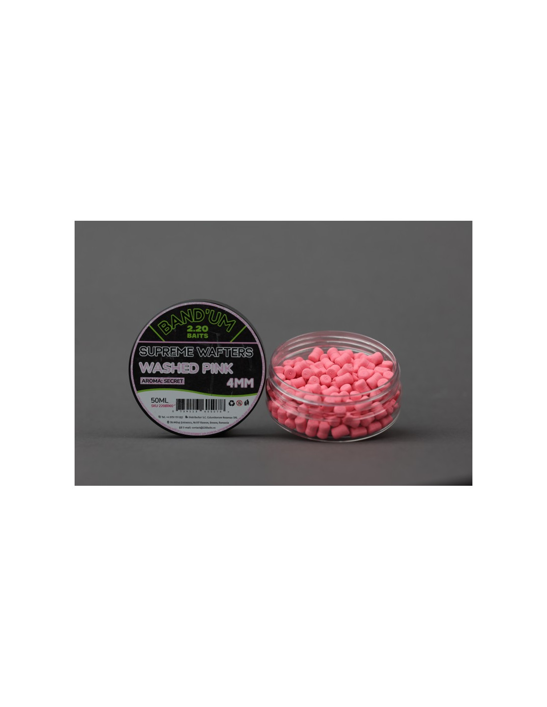 Ambalarea produsului este realizata la standarde profesionale, in flacoane de 50 ml, dotate cu capac prevazut cu garnitura, mentinand prospetimea si intensitatea aromei pentru o perioada indelungata. Textura si flotabilitatea noilor momeli de tip wafter raman constante chiar si dupa mai multe ore sub apa, oferind performante ridicate pe durata intregii sesiuni de pescuit.