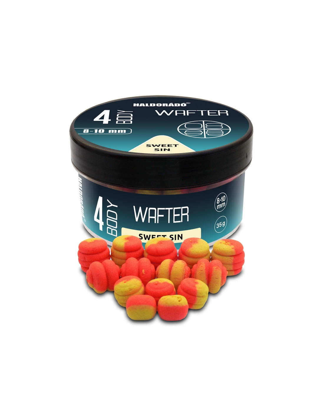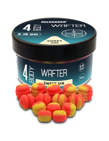 Caracteristica speciala a celor 4 Body Wafters este ca borcanul contine patru tipuri de momeala in forma des folosita in pescuitul crapului . Acestea sunt peleti de 8 si 10 milimetri cu flotabilitate moderata , asa ca pot fi folositi in timpul pescuitului cu method sau pescuitul traditional la crap.