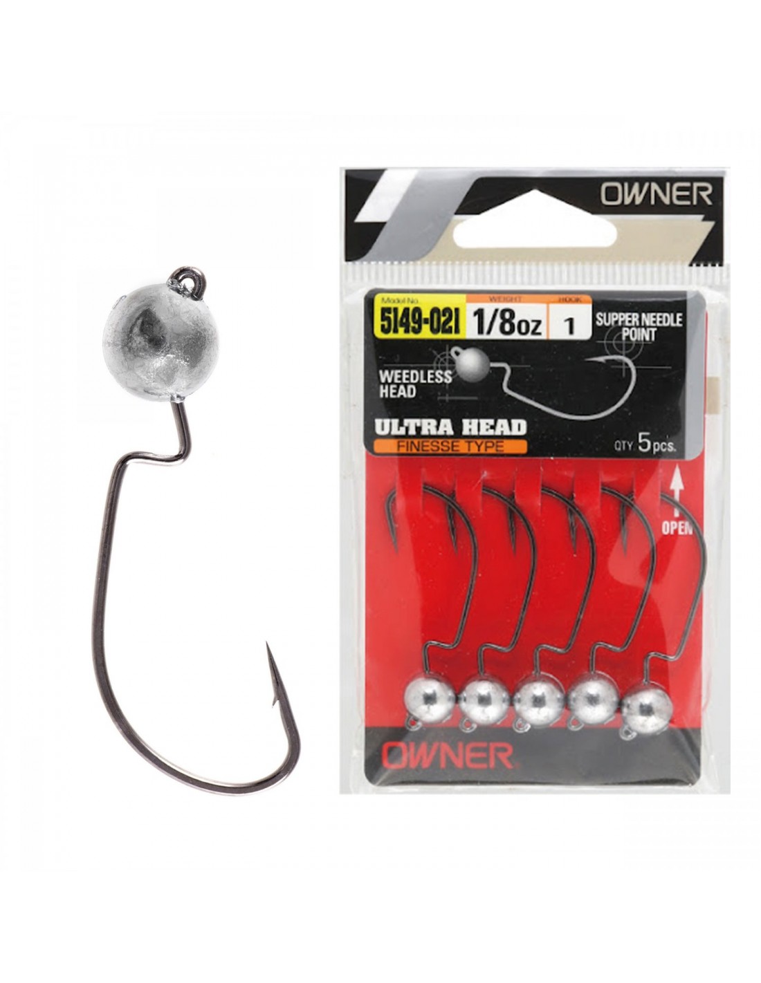 Alinierea intre ochet si varful carligului favorizeaza prezentarea nalucii in apa. Lestul turrnat al jigului Ultra Head Finesse Type este conceput anti-agatatura si sunt disponibile multiple gramaje. Jigul 5149 este ideal a fi utilizat pe montura Texas Rigging , cu naluci de tip tub, viermi, gruburi. Lestul este rotund turnat peste un jig in forma de "J", cu umar tip Z-Lock , special pentru prevenirea pierderii nalucii, varful este Owner Super Needle Point si finisaj negru crom.