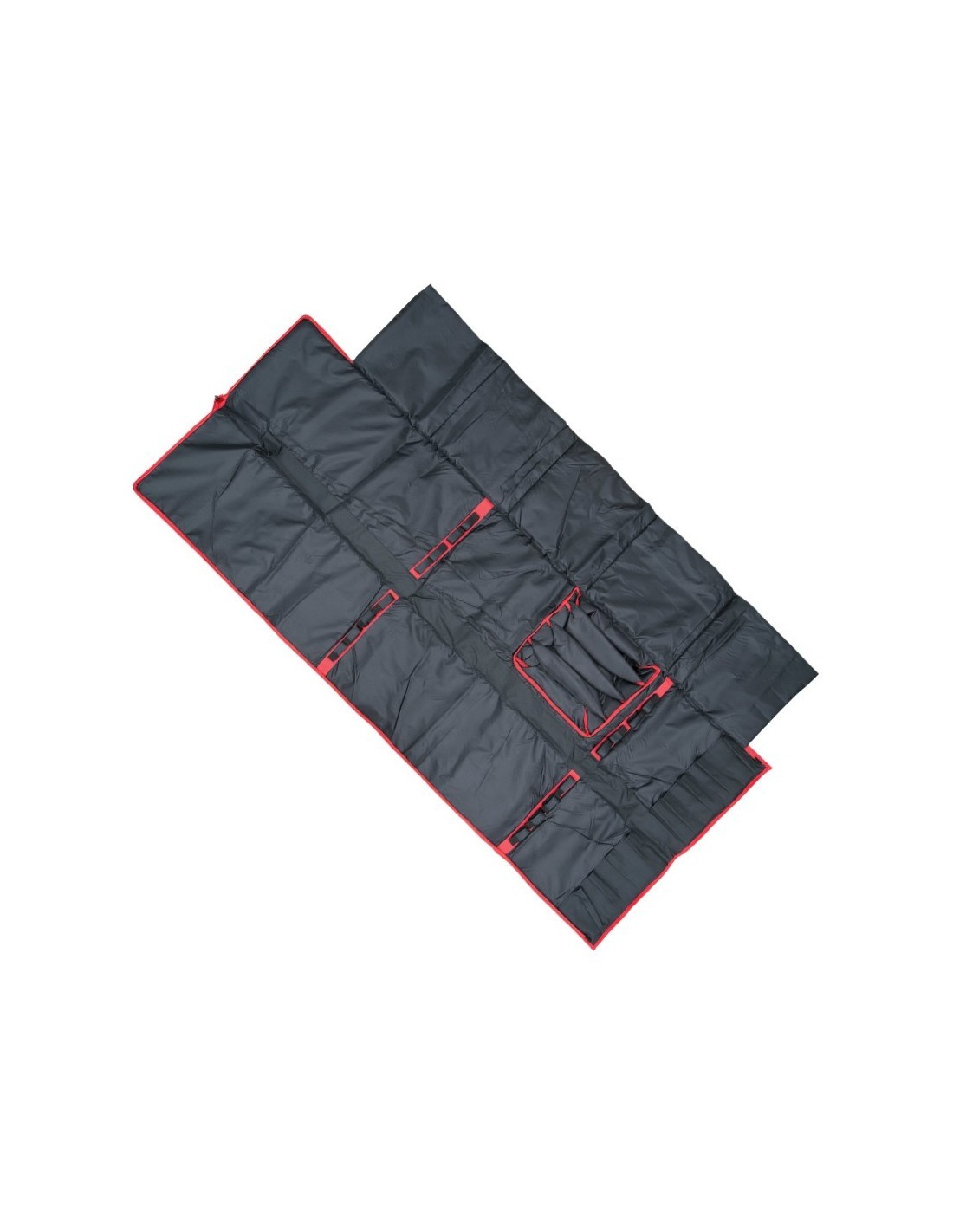 - Geanta are trei compartimente laterale pe o parte, precum și alte 2 compartimente lungi pe partea opusă