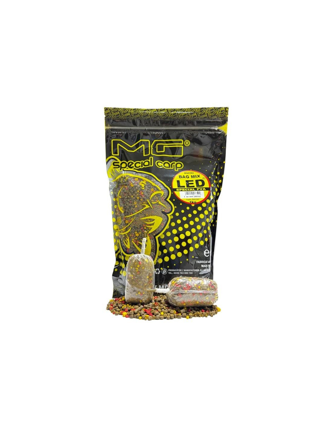 Bag Mix LED este un amestec special conceput pentru pescuitul cu PVA bag-uri si momitoare, avand o formula inovatoare ce combina mix de pelete cerealiere si fishmeal de 4 mm si 2 mm cu puterea nadei LED. Acest ingredient creeaza un nor fluo atractiv, care se mentine in apa timp de minimum 45 de minute, sporind vizibilitatea si atractia in zona de hranire.