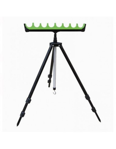 Formax Telescopic Rod Holder este un tripod telescopic, ideal in cadrul partidelor de pescuit stationar. Asigurarea durabilitatii este realizata de calitatea superioara a aluminiului utilizat in conceperea sa. Date fiind materialele rezistente din care este confectionat, ofera posibilitatea acomodarii atat a lansetelor, cat si a vergilor, mentinandu-le o pozitie stabila pe toata durata partidei de pescuit. Picioarele beneficiaza de un varf ascutit, ce va contribui vertiginos la fixarea sa pe orice tip de teren. Dispune de un design compact, ce va facilita atat transportul, cat si depozitarea acestuia.
